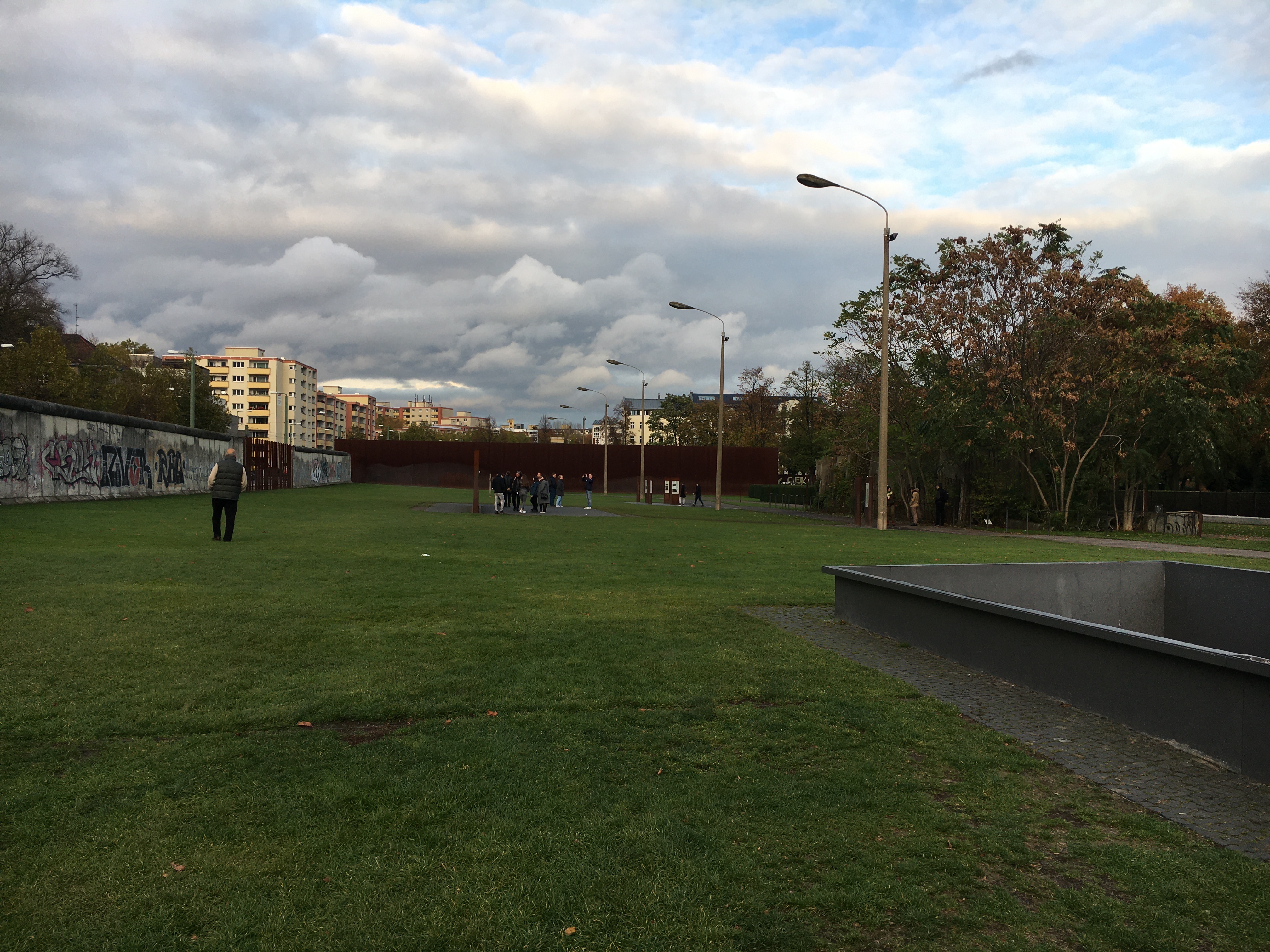 Humanizing the Wall. We visited the Berlin Wall Memorial. Here is a swath of the wall, about 100 meters wide, turned into a park and visitors’ center.