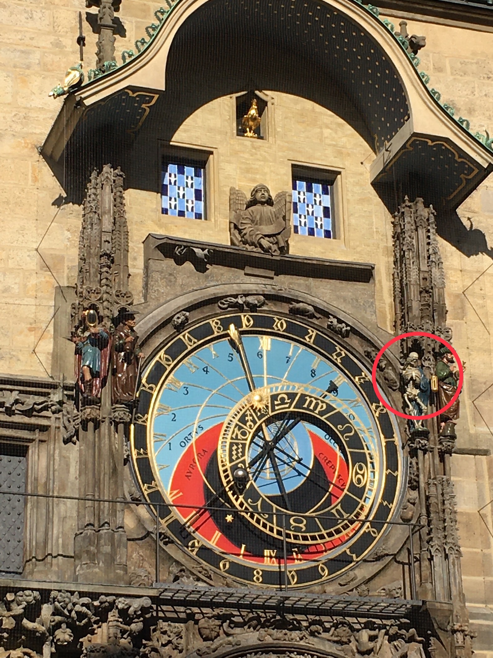 The Astronomical Clock is a central attraction. On the hour, the Twelve Apostles appear in the blue windows above the clock. But what I liked was the skeleton ringing a little bell, one ring for each hour.