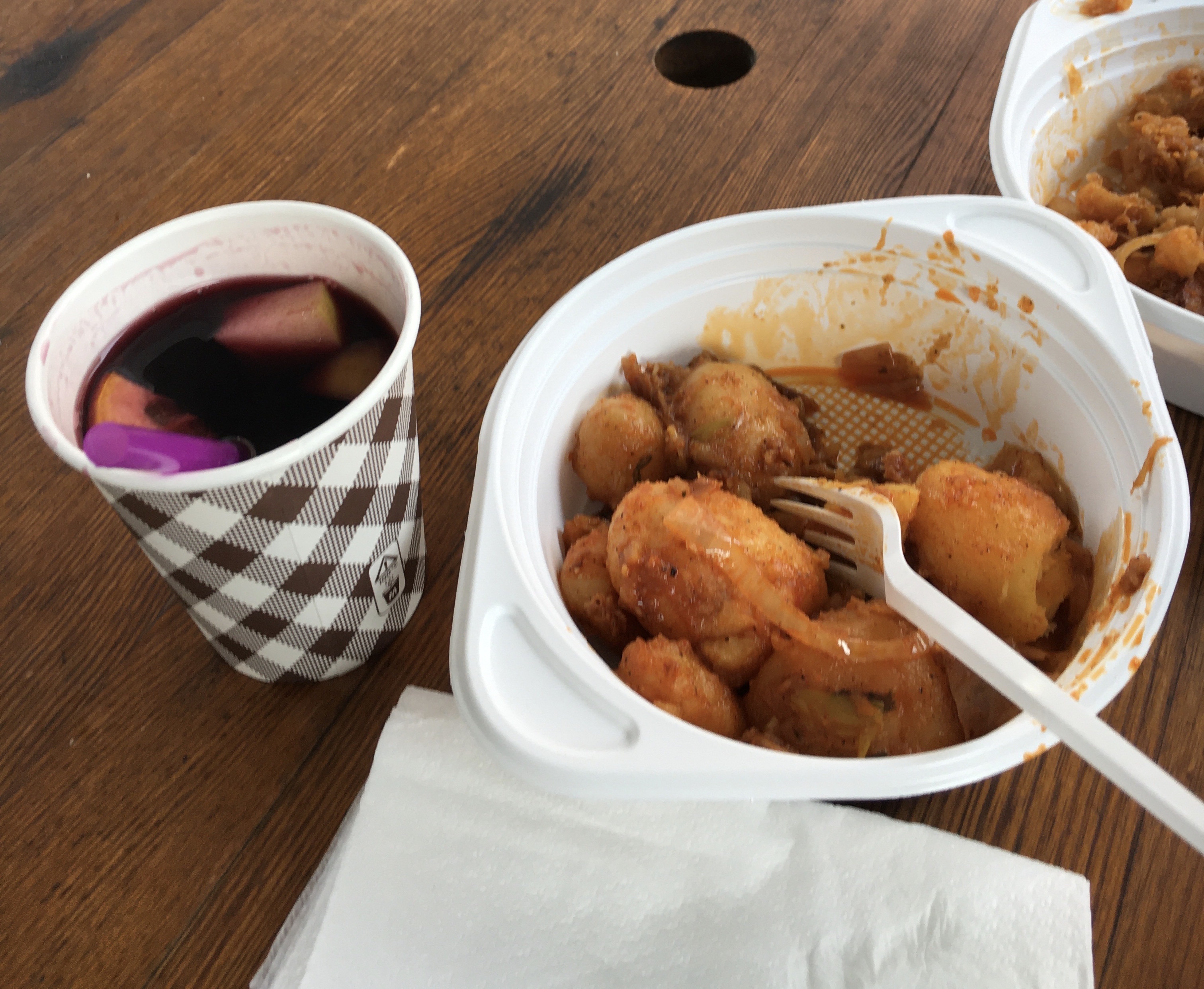 Another hut sold hot spiced wine, red or white. A charming young man said it’s a winter drink; I was surprised at the generous size of the servings he poured me.