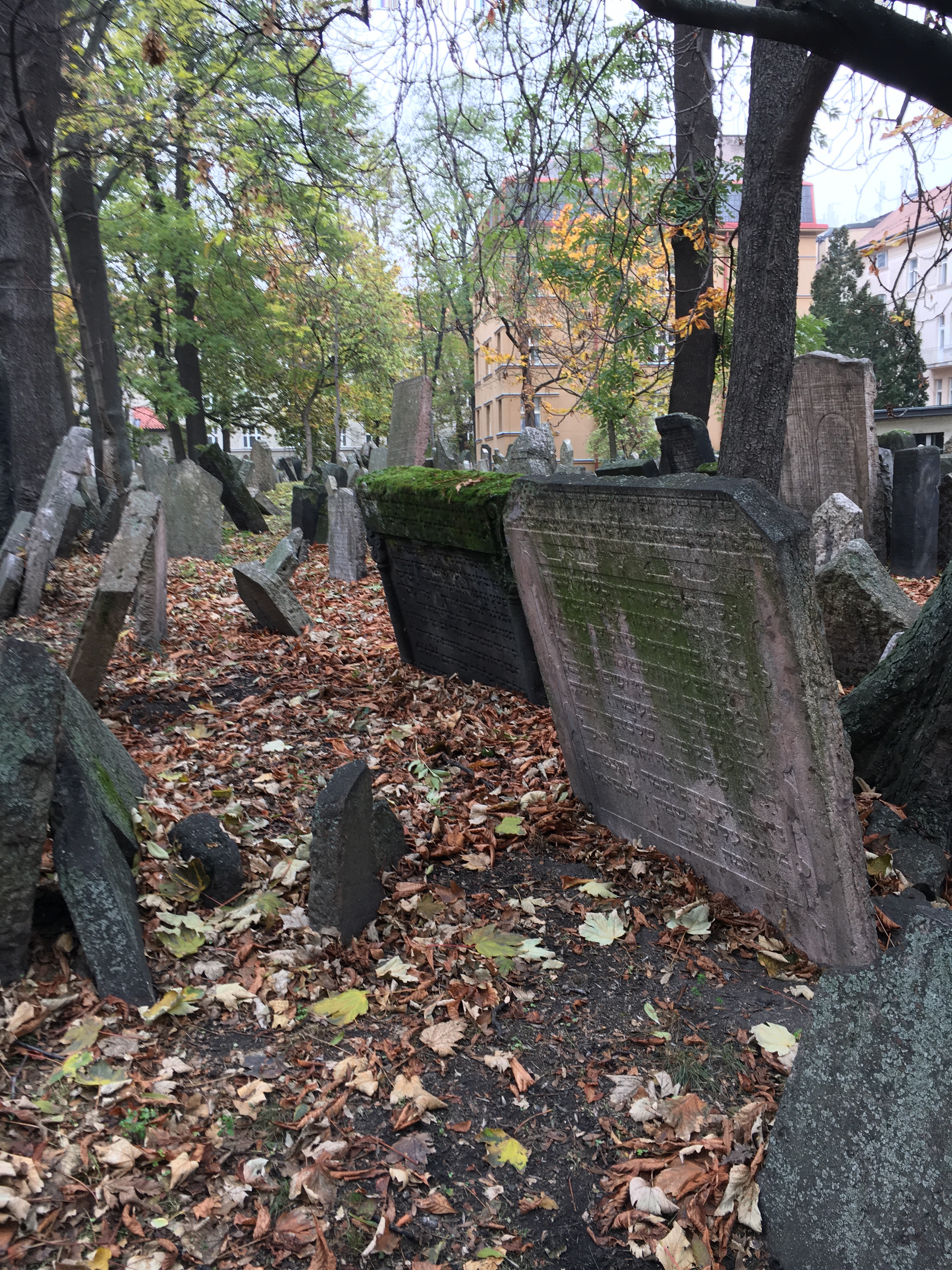 The visitors hushed as we walked next door through the old Jewish Cemetery, crowded with layers of those buried in this cramped space over hundreds of years. I was comforted to see violet plants among the crooked stones.