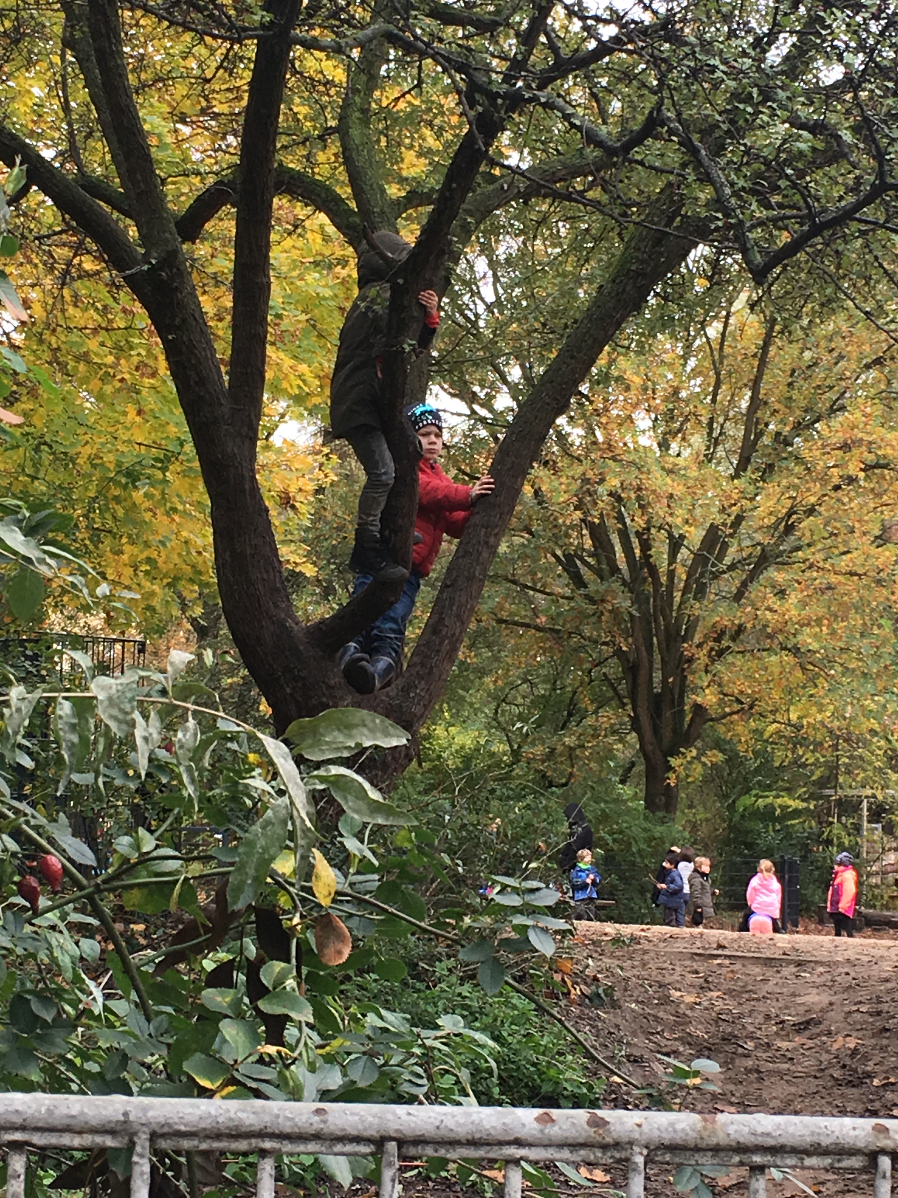 We peeked into a school playground where kindergarten sized children were playing in the woods and climbing trees. (I’d read about this movement to let kids get dirty and maybe even fall down!)