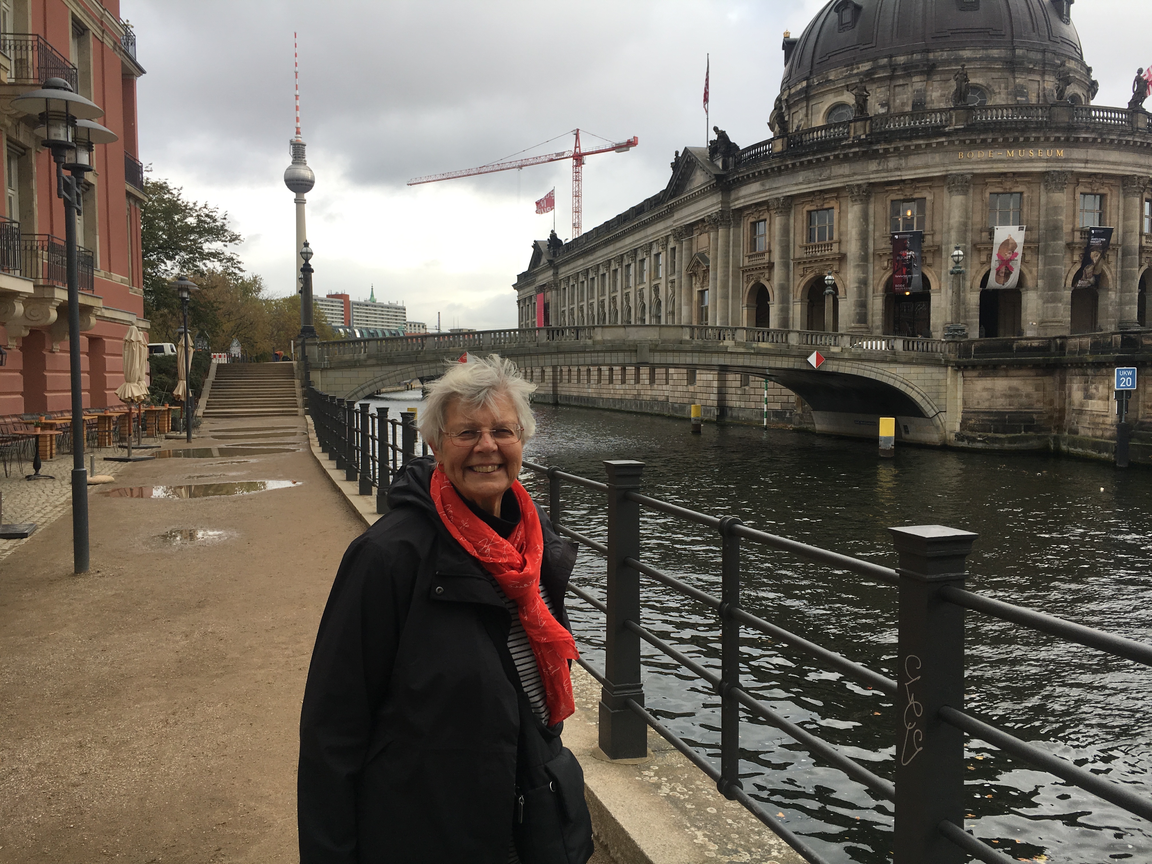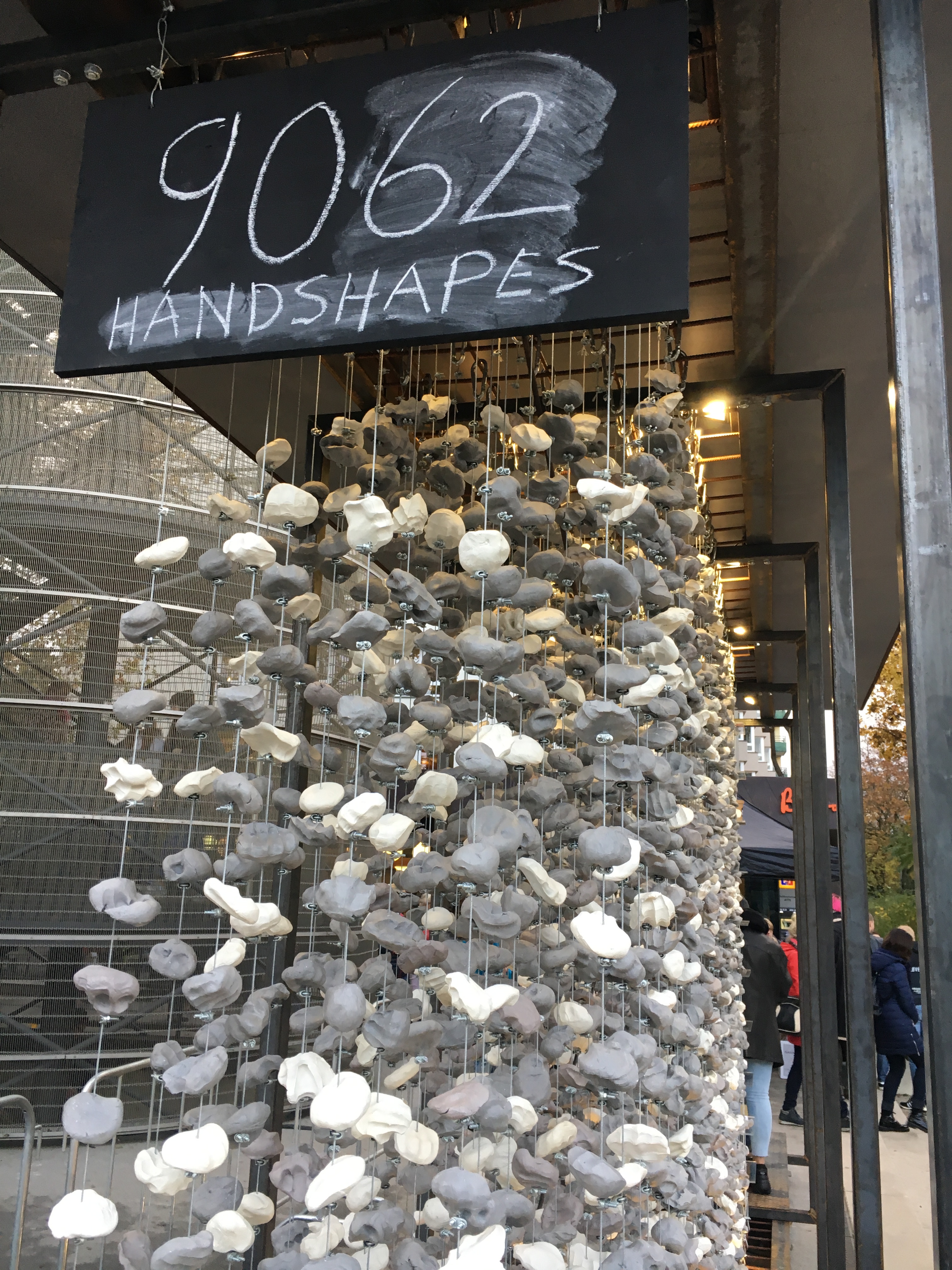 We participated in an art installation “Handshape.” Here’s how it worked: a purple haired guy introduced us each to a stranger. Our task was to chat and find something we had in common. I met Billie from England. We discovered we had both lived in East Anglia. Mike met Pete, a Berliner who loves the outdoors. Once we had made our connection, the purple guy gave us a lump of clay that we grasped together so our fingers imprinted. The handshapes were added to the sculpture. Eventually there will be a shape for each day since November 9, 1989. You can find out more at http://www.handshape.berlin.