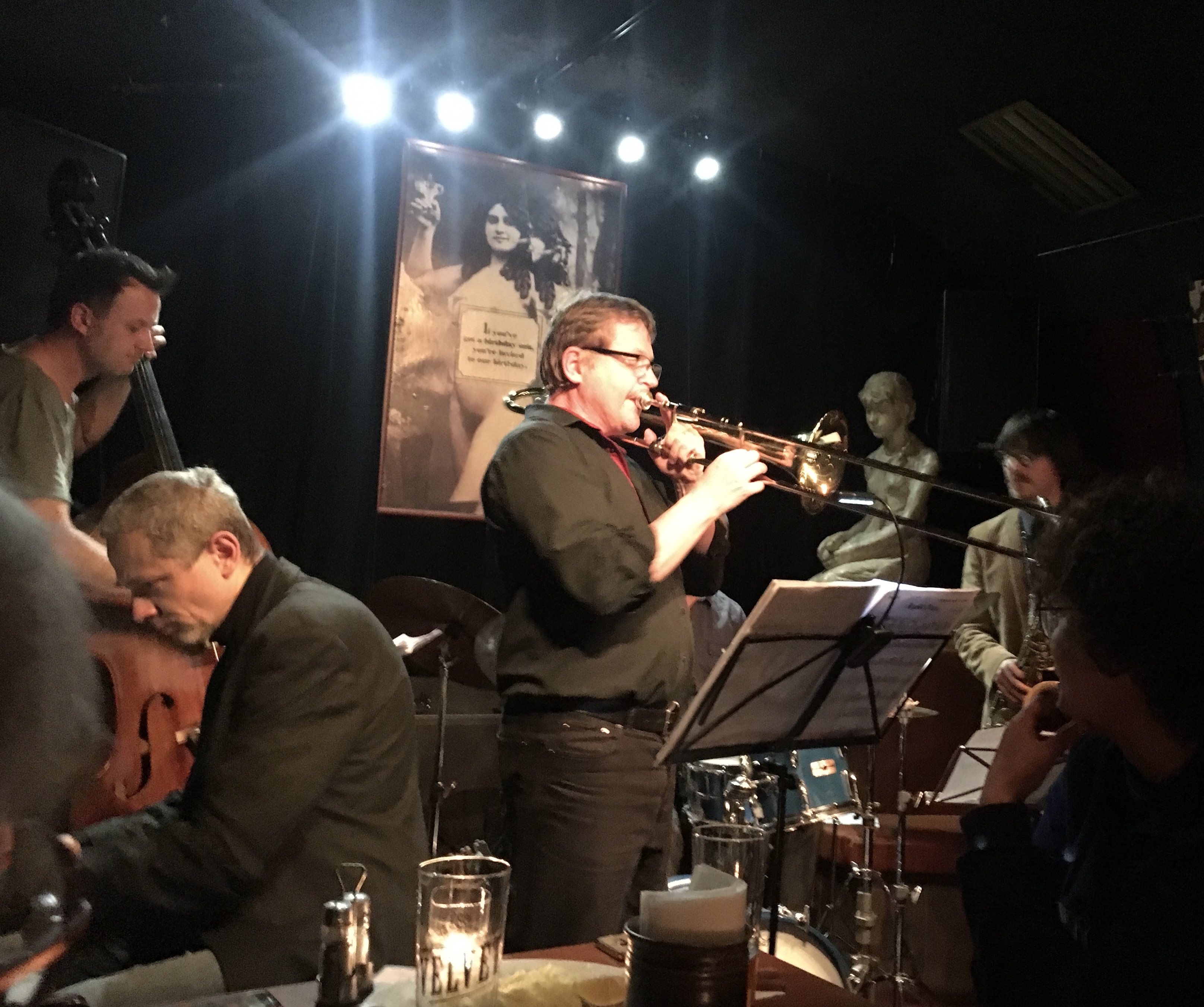 took a nap, ate a vegetarian dinner at a fancy restaurant, and finished the evening at an underground jazz club.