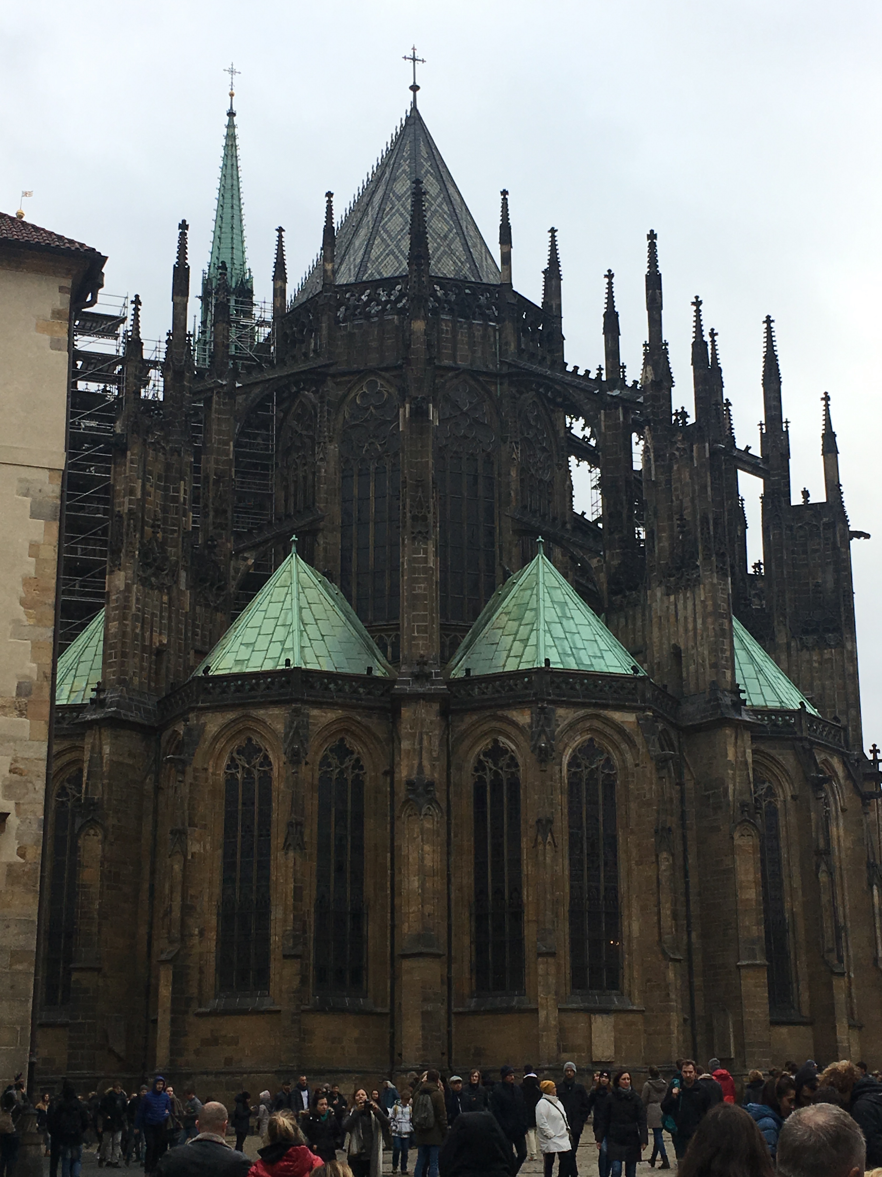 Our first stop was Saint Vitus Cathedral, home to the grave of Saint Wenceslas (the good king) and soaring stained glass windows including one by Mucha, 1931. Daylight flooded the enormous cathedral, even on this dreary day.