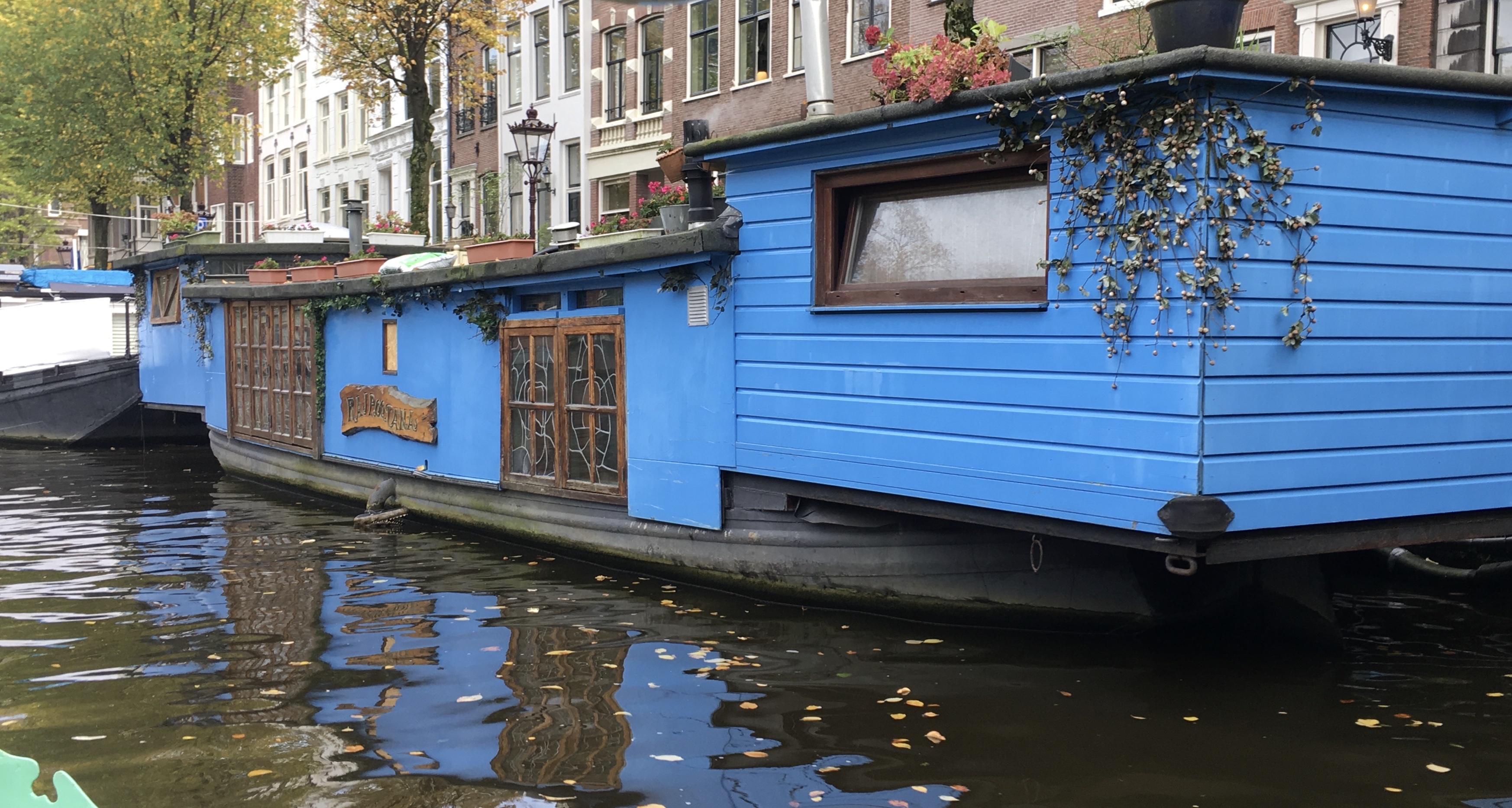 We had a lovely morning: coffee, fruit, croissants and cheese at 21 Herengracht. Chit chat with the innkeepers and the other guests. A walk on the now familiar canal. An enlightening visit to the “Canal Museum”, where we learned how the 17th century leaders carefully planned this city to include trees, gardens and public green spaces. Lunch on the canal watching the tour boats and a family of swans. We both agreed we’d love to come back to Amsterdam.
